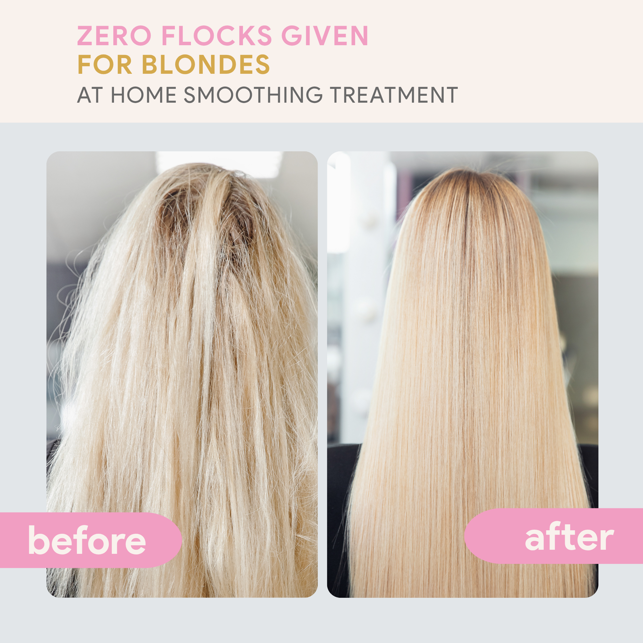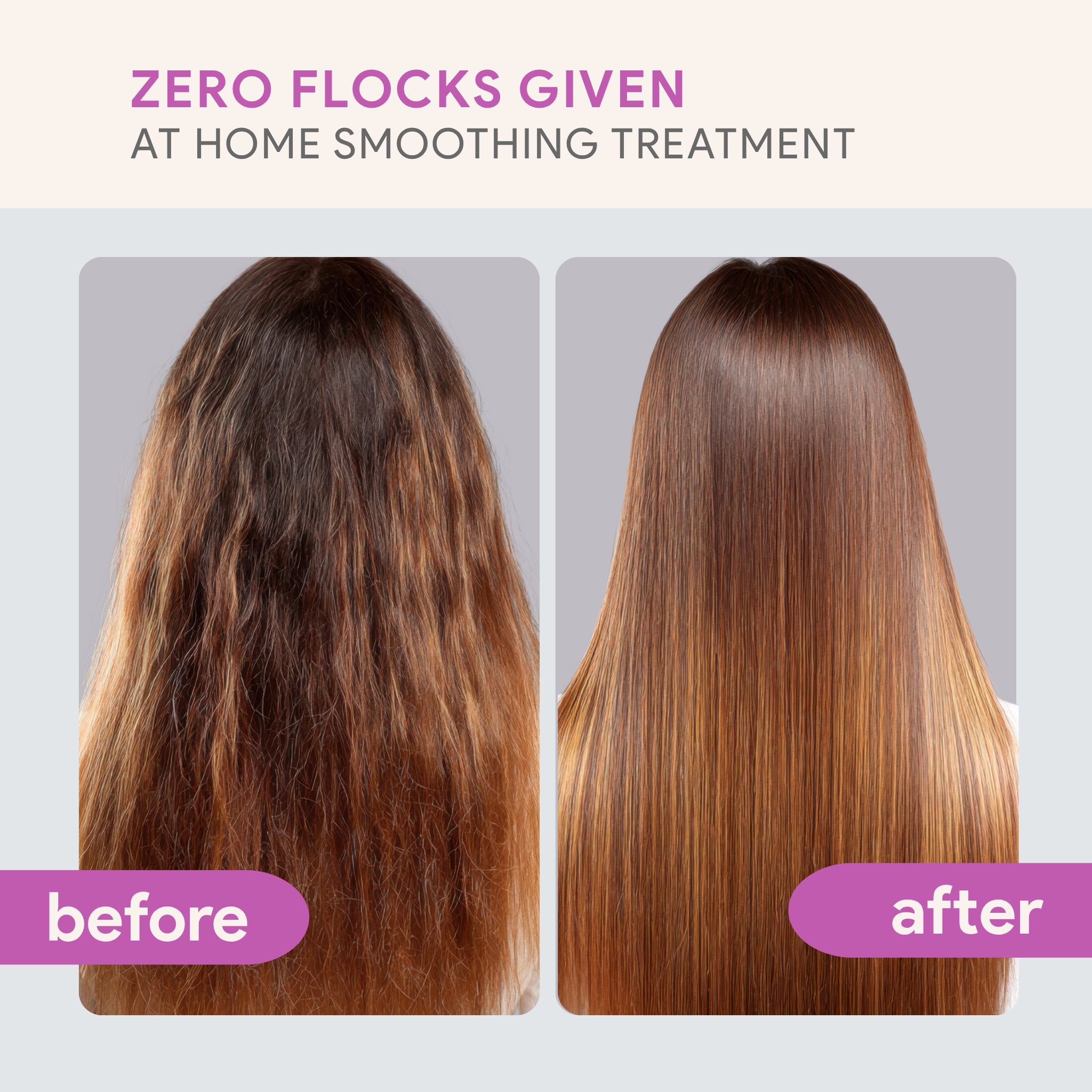 Our formaldehyde-free Anti-Frizz Smoothing Treatment is easy, convenient and safe. Zero Flocks Given provides you the most versatile results all from the convenience and privacy of your home.